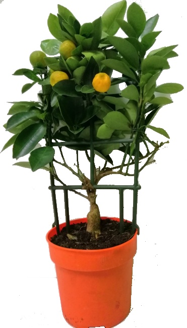 Citrus Calamondin na mřížce o šířce květináče 15 cm a výšce cca 35-40 cm. Jedinečné ovocné stromky vyvinuté pro pěstování lahodných malých plodů.