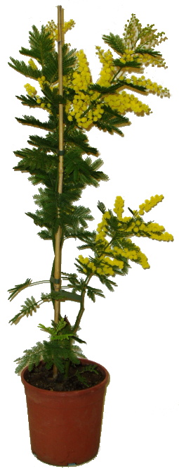Mimosa, u nás známá i pod názvem Acacia dealbata. Průměr květináče 18 - 22 cm. Výška cca 170 cm.