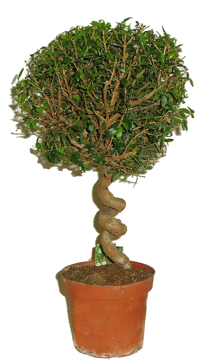 Myrta obecná o výšce cca 45 cm včetně květináče, průměr květináče 12 cm. Nádherná košatá rostlina na kmínku. Velmi reprezentativní, vhodná na svatby nebo ke klasickému pěstování.