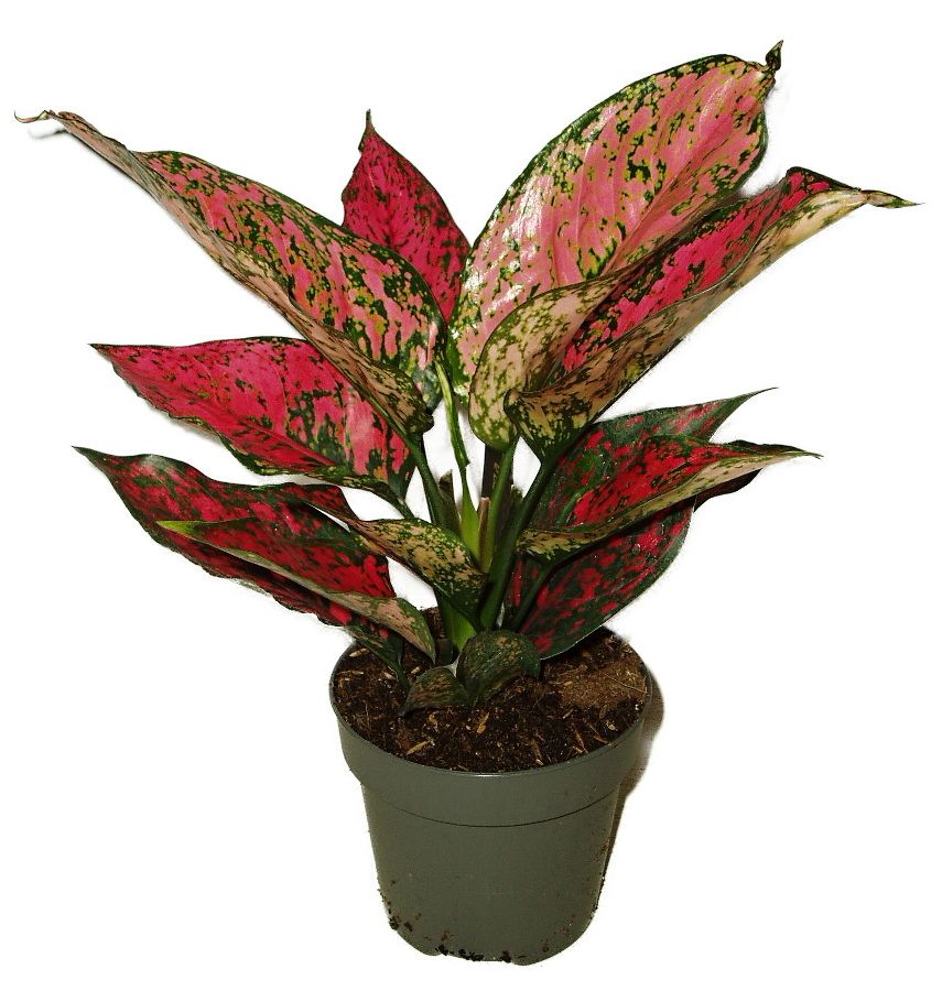 Aglaonema 'Spicy Pink' je okrasná pokojová rostlina s oválnými listy, které mají růžové skvrny. Výška cca 25 cm včetně květináče. Květináč průměr 12 cm.