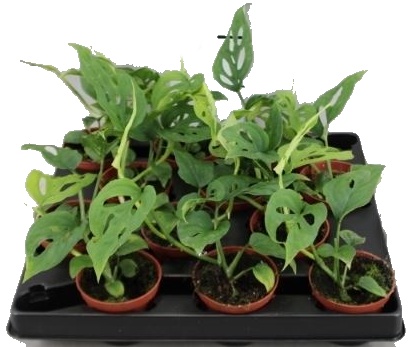 Monstera deliciosa exotická pokojová rostlina o výšce cca 25 cm včetně květináče. Průměr květináče 12 cm.