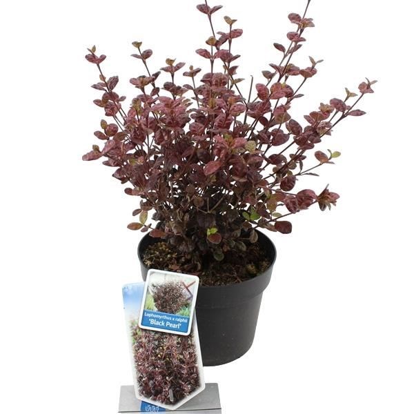 Lophomyrtus Black Pearl - Černá perla je oblíbená okrasná rostlina díky výrazným tmavě purpurovým listům. Tato rostlina je vhodná pro venkovní pěstování. Výška nyní cca 50 cm. Květináč 14 - 16 cm průměr.