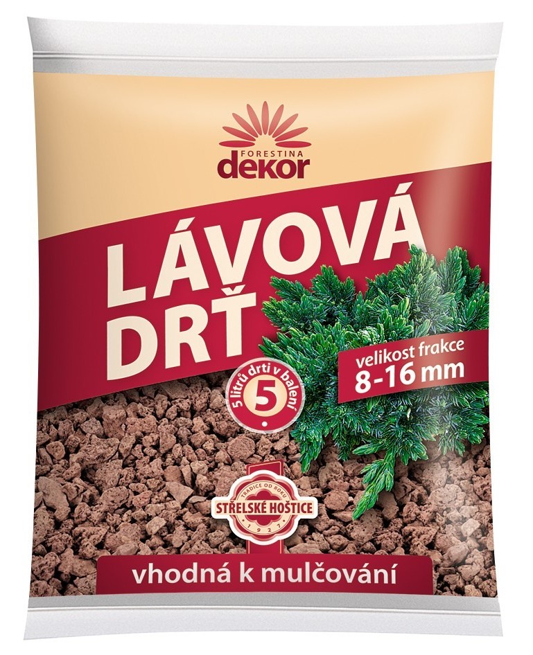 Forestina Lavová drť 8-16 mm 5 l - přírodní dekorativní a funkční materiál z kvalitní sopečné lávy, který spojuje estetiku s praktickým využitím v zahradě i interiéru. Vhodná jako dekorativní mulč do nádob, záhonů a truhlíků.