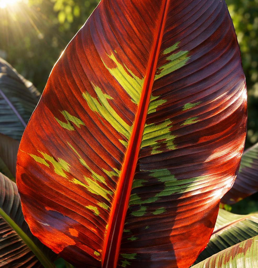 Musa sikkimensis „Ever Red" je jednou z nejvýraznějších a zároveň nejodolnějších odrůd mrazuvzdorného banánovníku, která spojuje dramatickou exotickou krásu s překvapivou schopností přežít i středoevropské zimy. Pochází z podhůří Himálaje v oblasti Sikkimu, kde je zvyklá na výkyvy teplot a silné větry – právě proto jsou její listy pevnější a větruodolnější než u většiny ostatních banánovníků. Listy jsou velké, nádherně zbarvené s výrazným červenofialovým nádechem, který se intenzivně projevuje zejména na mladých listech a na spodní straně listové plochy. Pseudokmen je silný, pevný, s charakteristickými červenohnědými skvrnami a pruhy. Od druhého až třetího roku může rostlina vytvořit i květenství s okrasnými, pro konzumaci nevhodnými plody dozrávajícími na podzim.