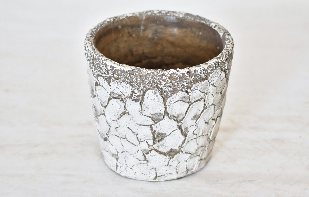 Moderní elegantní květináč s výrazným praskaným reliéfem. Povrch je drsný a matný nepravidelné struktury. Květináč je z kolekce Laura.