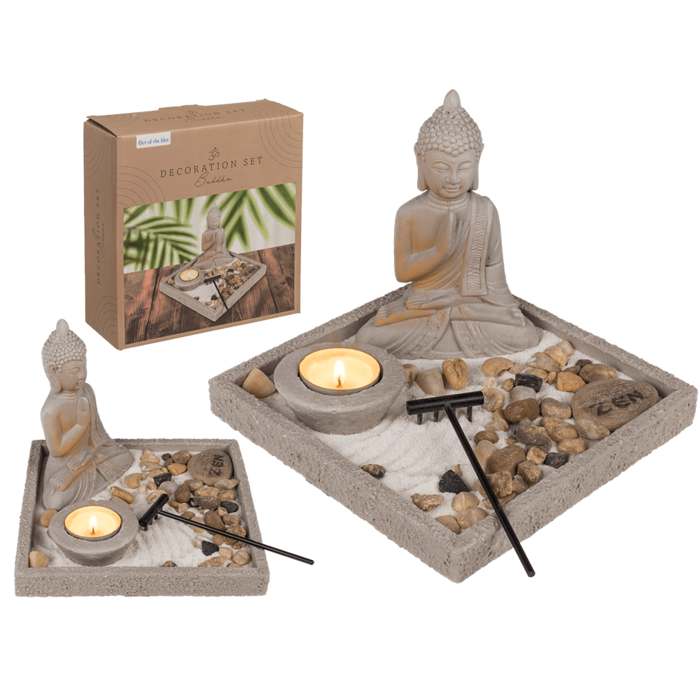 Zen garden meditační zahrada zenová o rozměru 18 x 18 x 15 cm. Můžete upravovat hrabičkami písek, kamínky, neustále měnit a dokonale relaxovat u toho.