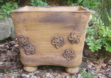 Krásný mohutný kameninový květináč stojící na nožkách s květinovým dekorem. Květináč je těžší, takže vítr s ním opravdu nehne a mráz jej nepraskne. Materiál je mrazuvzdorný a velmi odolný. Větší rozměry zajistí maximální komfort každé větší květině. Díky svému neutrálnímu romantickému vzhledu se hodí na každou zahradu nebo před dům, do skalky apod.