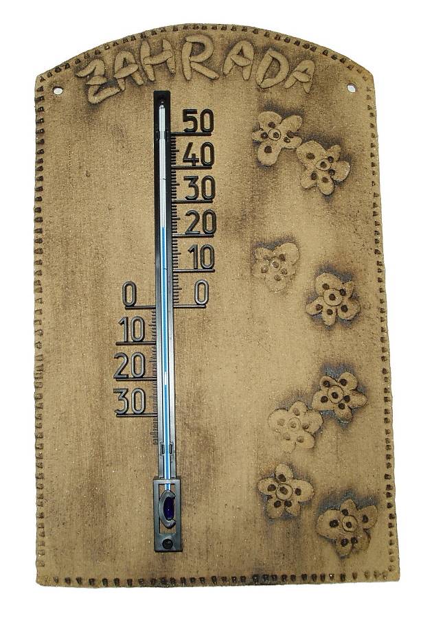 Ručně vyrobený teploměr s rozměry 34 x 21,5 cm. Provedení se může lišit.